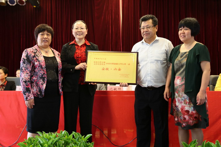 海南医学院副教授、副主任助产师张宏玉博士,河北邯郸永年县妇幼保健院副主任助产师崔素香主任,为本次活动发起单 位——六安市妇联、六安市立医院授牌